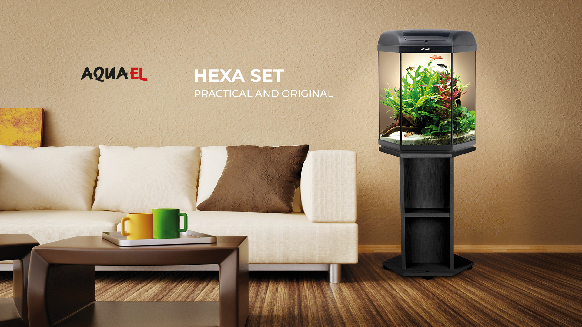 The original HEXA tanks are a versatile decoration for any room: from the elegant living room to the hall, the study, the office or the children's room.